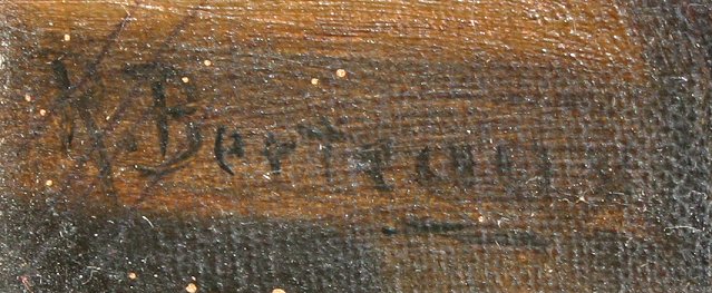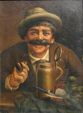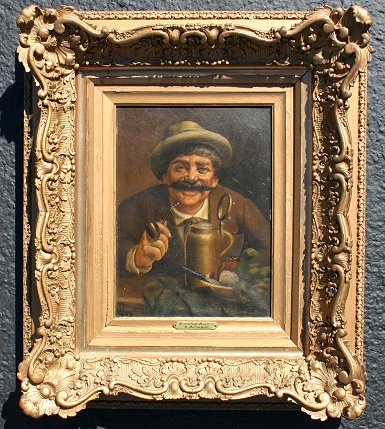 19th C O/C MAN SMOKING A PIPE: O/C, 12'' x 9'', SLL R. Bertreaux?, period frame with overpaint, 21'' x 19''.