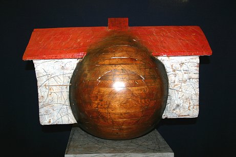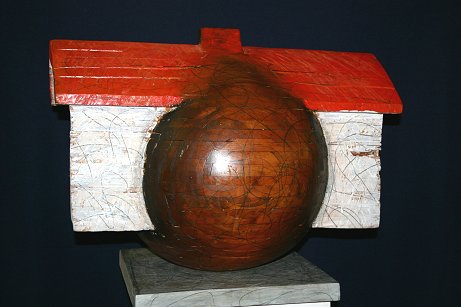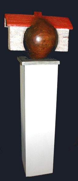 HAGEDORN, Bernard, (American, 20th C): ''My House Mother Earth'', Painted Pine Sculpture, 17'' h x 23 1/2'' l., sold with pedestal, 48 1/2'' h. Exhibited at the Skowhegan 10 year Retrospective.