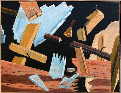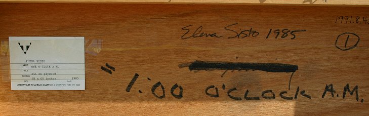 SISTO, Elena, (American, 20th C.): ''1 O'Clock A.M.'', O/B, 4' x 64'', signed, dated 1985, and titled verso, Vanderwoude Tananbaum Gallery label affixed. Exhibited at the Skowhegan 10 year Retrospective.