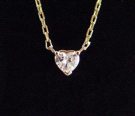 1/2 CT HEART SHAPED DIAMOND PENDANT: Delicate necklace with prong set diamond, heart shaped, approx. 1/2ct, measuring 4.5 x 3.7 x 2.3mm, 18''l, 1.5 grams.