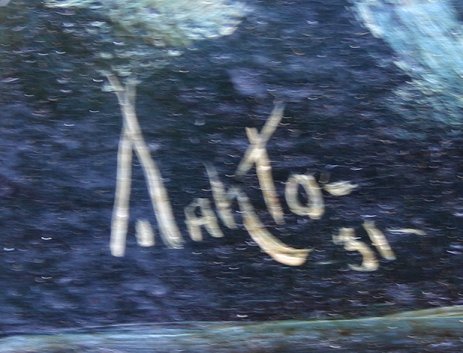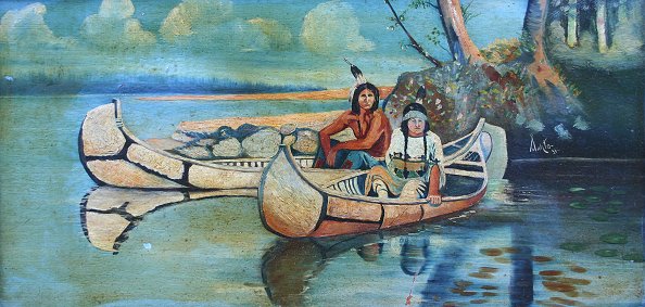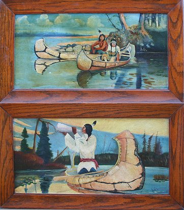 PAIR INDIAN FOLK ART PAINTINGS: Both signed **anto?, 10'' x 20'', matching oak frames, 13 1/2'' x 23 1/2''.