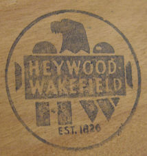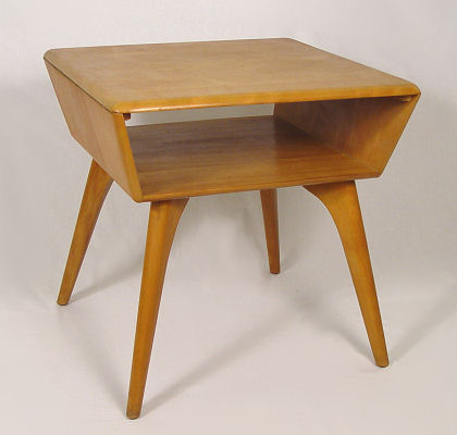 HEYWOOD WAKEFIELD LAMP TABLE: M364G, wheat, top 26'' x 24'', shelf 21'' x 21'', 26''h.