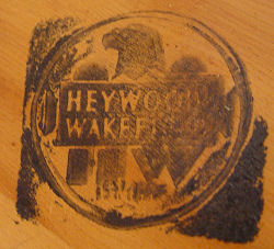 HEYWOOD WAKEFIELD ASHCRAFT MAGAZINE END TABLE: J352, original finish, top 15'' x 28'', approx. 21 1/2''h.