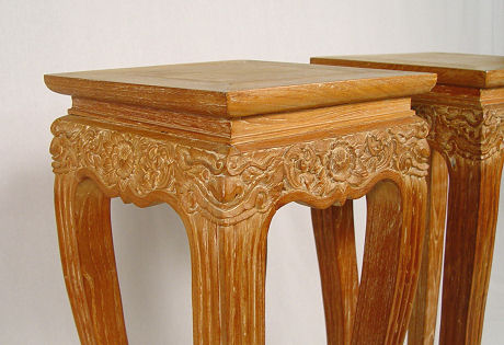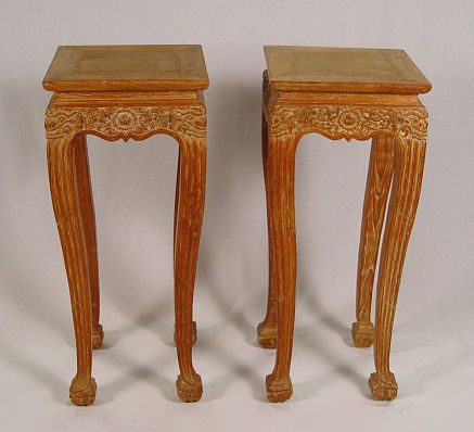 PAIR OF CHINESE CARVED TEAK STANDS: 32''h. top is 13 3/4'' square.