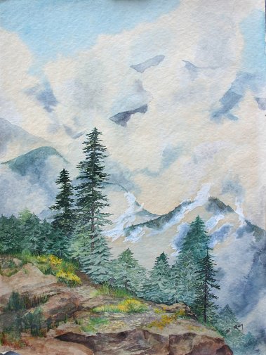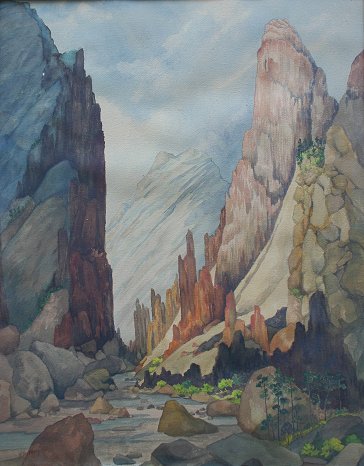 2 WATERCOLOR PAINTINGS SIGNED E.M.MAY: Yosemite Valley and Mountain landscape, 19 3/4'' x 15'', both are signed, barnwood style framing, 30'' x 26''.