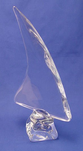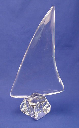 LARGE DAUM FRENCH COLORLESS CRYSTAL SAILBOAT: Signed Daum France, 16'' h.