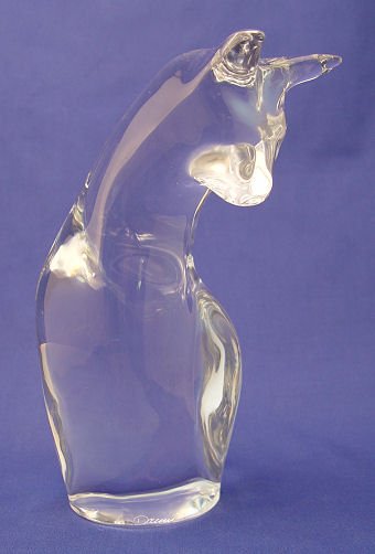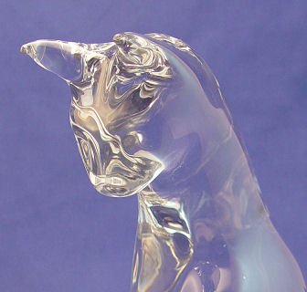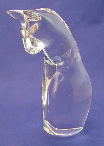 DAUM FRENCH CRYSTAL CAT: Sitting proud, signed Daum France, 9 1/2'' h. Please note repair to ear.
