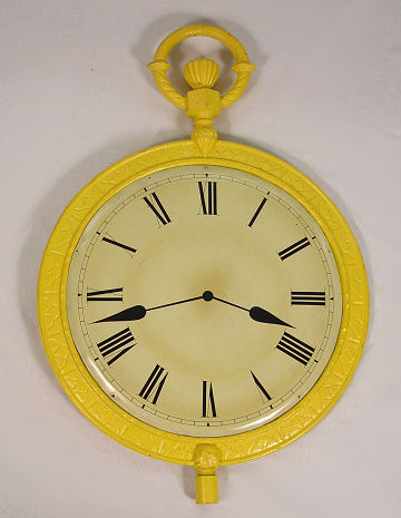 VINTAGE CAST IRON WATCH OR CLOCK TRADE SIGN: Once mounted on a pole, there is a 19 1/2'' dial on both sides. Painted finish. 35 1/2'' h. overall.