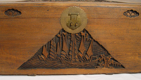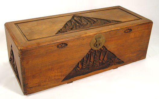 CHINESE CARVED CAMPHOR CHEST: 15 1/2'' x 48'' x 20''