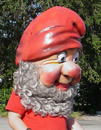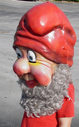 VINTAGE 1950'S DISNEY SEVEN DWARF'S MASK: Molded plastic head mask with eye slits and holes for breathing. The mask has snaps on each side. It fits either child or adult. The head without beard measures 18'' high. Good condition except for small tear under left eye.