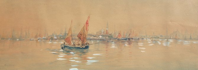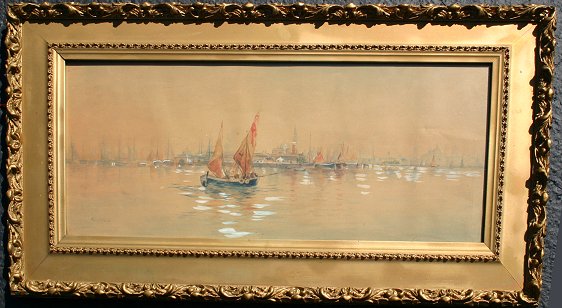 CARRIE HARPER WHITE, VENETIAN W/C: SLL, period frame with gold overpaint, 19'' x 36''.