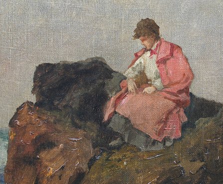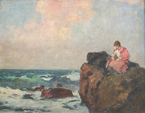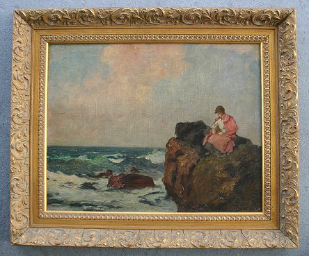NEOGRADY, Antal, (Hungarian, 1861-1942): Coastal Scene with Lone Figure, O/C, 16'' x 20'', SLR, later frame, 22'' x 26''.