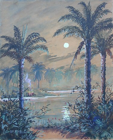 BURTON, William Paton, (British, 1828-1883): Tropical Bayou Nocturne, W/C and Gouache, 13 1/2'' x 11'', SLL. Est. $800/1200**