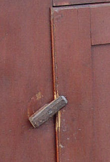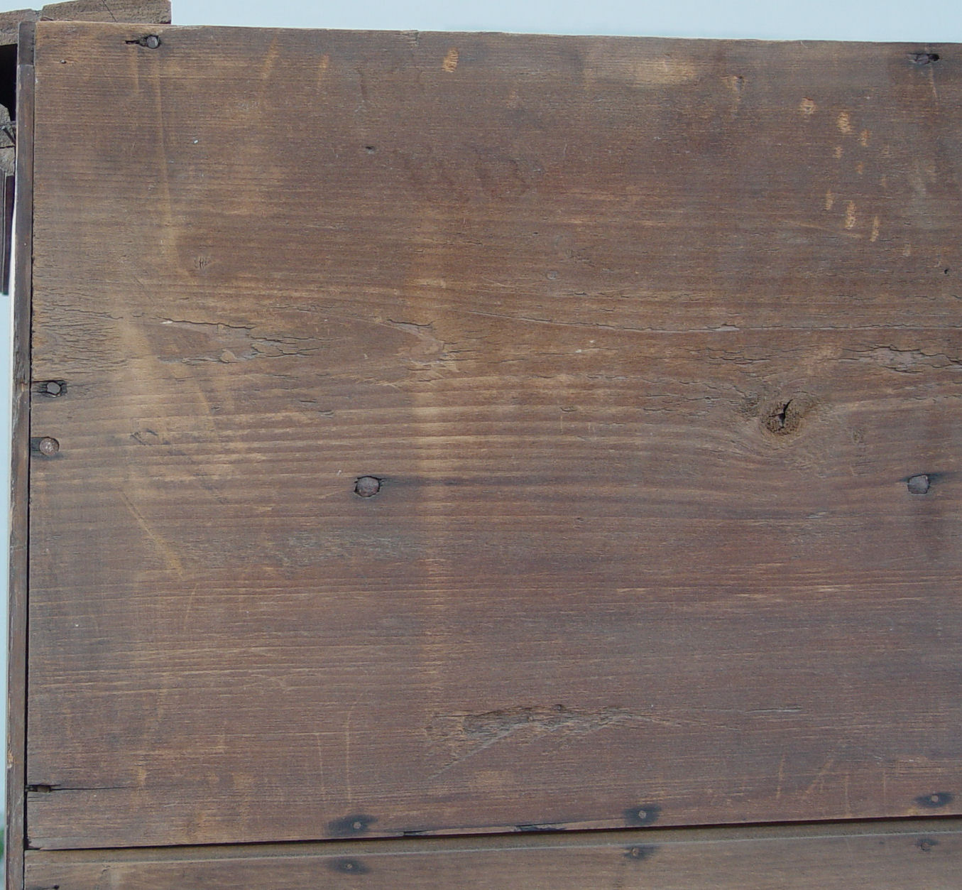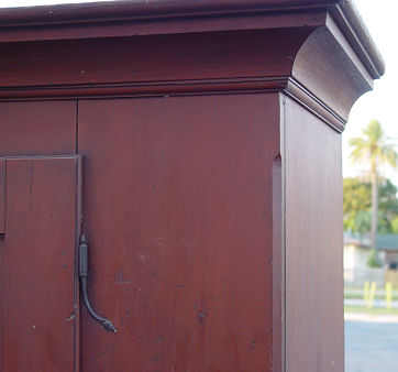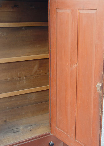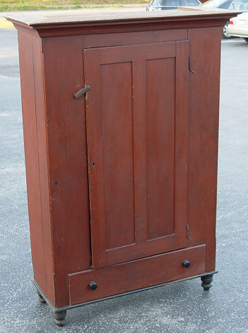 MID 19TH C AMERICAN COUNTRY PAINTED WARDROBE CABINET: Single door over full length drawer (9'' deep), shelved interior. Overall height 78 1/2'' x 55'' w x 22 1/2'' (actual depth of wardrobe is 18''d).