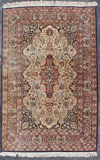 ORIENTAL BLUE QUM RUG: Approx. 4' x 6', hand woven.