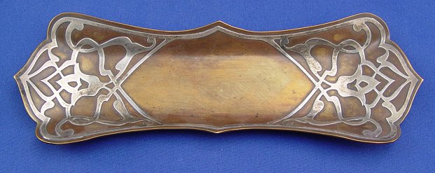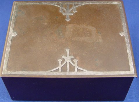3 PIECE HEINTZ ART METAL ARTS AND CRAFTS LOT: To include a silver on bronze bowl, 3'' h. x 9'' dia., silver on bronze lidded box, 2'' h., 3 1/2'' d., 4 1/2'' w., silver on bronze pen tray, 9 1/2'' x 3 1/4''.