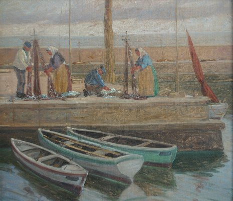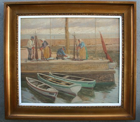 DANISH HARBOR PAINTING, ILLEGIBLY SIGNED: O/C, 19 3/4'' X 22 1/2'', SLR, gold gilt frame with wear, 25 1/4'' x 28 1/4'', circa 1930's.