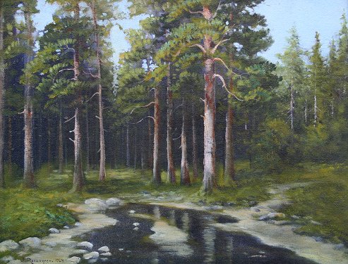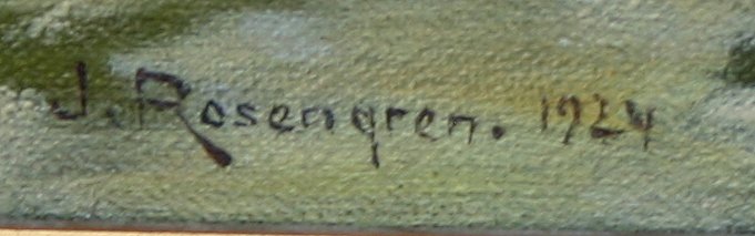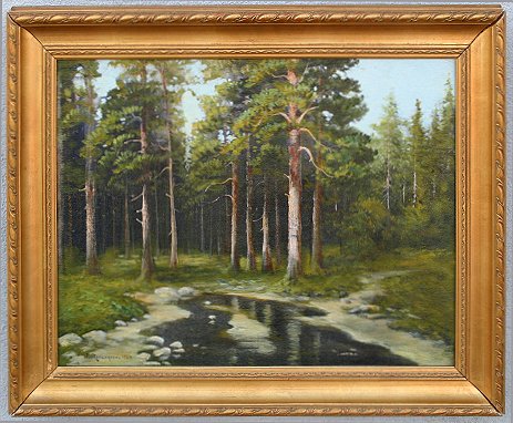 ROSENGREN, Jean, (Swedish, 1894-1965): Forest stream, O/C, 15 1/2'' x 20 1/4'', SLL, worn gilt frame, 20'' x 24''.
