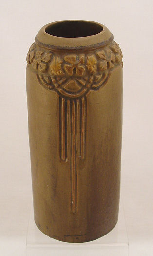 ARTS & CRAFTS POTTERY VASE DATED 1921: Incised monogram ETE, 10'' h., several small chips in shoulder design.