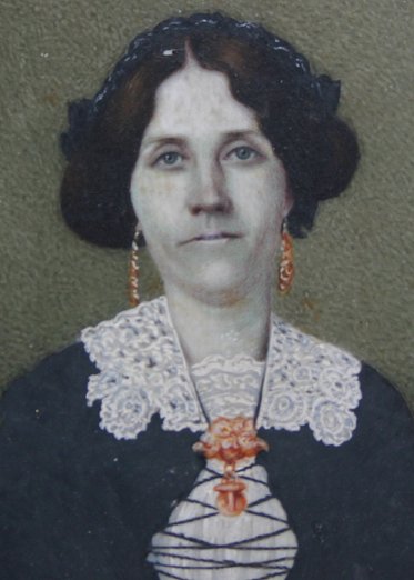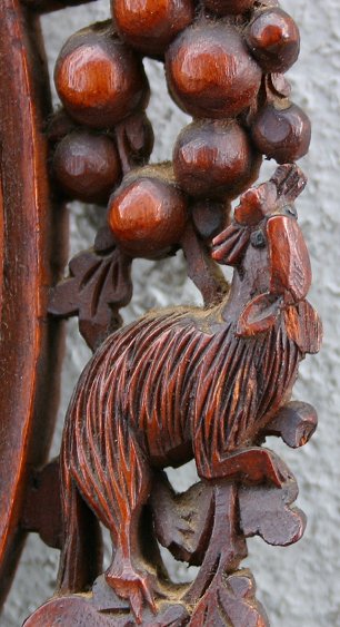 19th C. CARVED BEAVER FRAME WITH PAINTING ON IVORY: Sight size 5 1/2'' x 3 1/2'', reverse painted glass is missing some paint, unusual leaf, berry, and beaver motif frame measures 11'' x 9''.