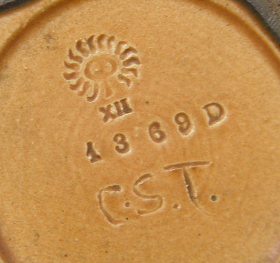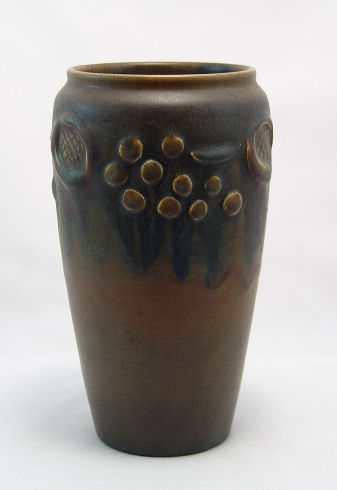 ROOKWOOD ARTS AND CRAFTS POTTERY VASE: Artist Charles Todd, dated 1912, shape 1369D. Please note small fleck to underside of base possible glaze pop, 9''h, diam of neck is 4 1/2''h.