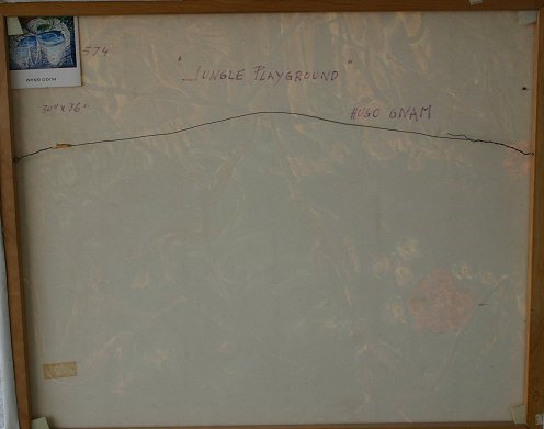 GNAM, Hugo, (American, 20th C.): ''Jungle Playground'', O/C, 30'' x 36'', SLR, dated 1986, signed and titled verso, unframed.