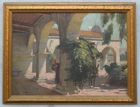 STONE, G. M., (American, 20th C.): California Mission, O/C, 17'' x 24'', SLL, worn period frame, 20 1/2'' x 27 1/2''.