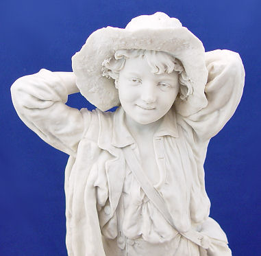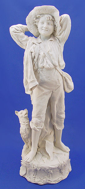 ROYAL DUX PARIAN STATUE OF BOY AND DOG: Pink triangle, incised 658, 20 1/2'' h.