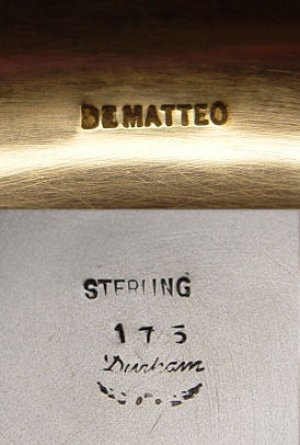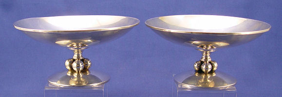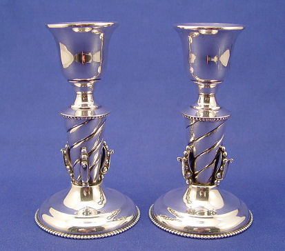 4 PC STERLING LOT: To include a pair of Durham compotes, #175, 6 1/2''dia, 3''h. and a pair of DeMatteo candlesticks 5 7/8''h., one with small dent at top. Compotes 524.5 grams/16.8 troy oz., sticks 331 grams/10.6 grams.