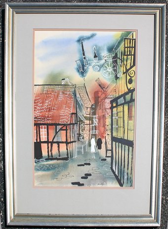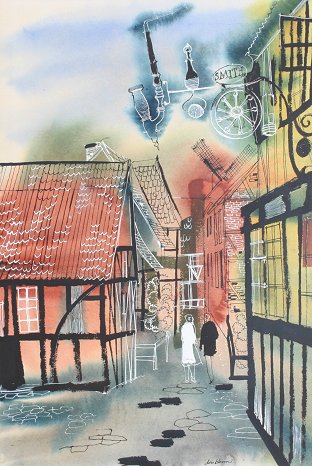 BLOOM, Don, (American, 1920-): Street scene with figures, W/C, 22'' x 15'' sight size, signed bottom margin, 32'' x 23 1/2'' custom frame.