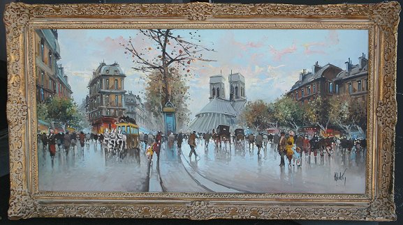 DEVITY, Antonio, (Italian, 20th C): Parisian street scene, O/C, 24'' x 48'', SLR, carved frame, 31'' x 55'', studio stencil verso, the best and biggest we have offered!