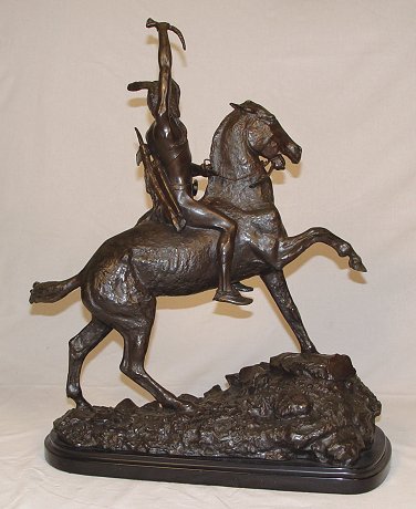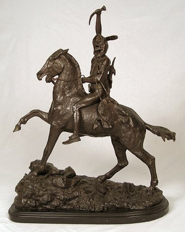 REMINGTON BRONZE RECAST ''THE SCALP'': 23 1/2'' h., affixed stone plinth; a heavy casting, better than most!