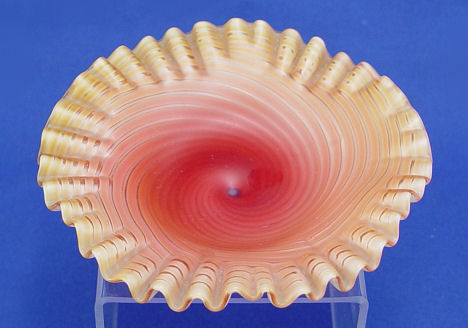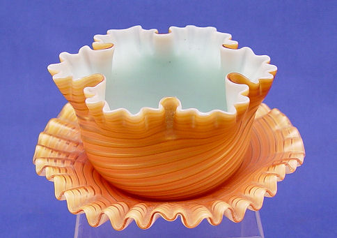 STEVENS & WILLIAMS REVERSE POMPEIIAN SWIRL BOWL AND UNDERPLATE: The underplate is approx 4 7/8'' dia. and the bowl is approx. 3 3/4'' dia., 2 1/2'' h.