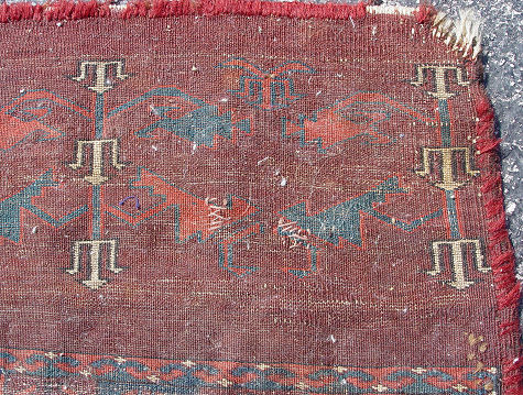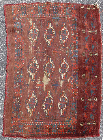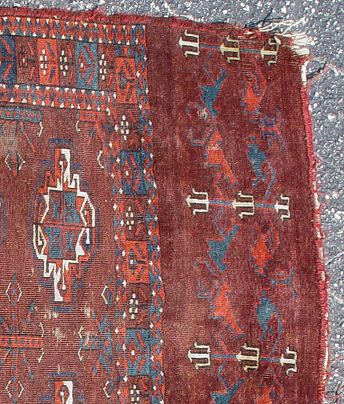 SEMI-ANTIQUE TURKOMAN ORIENTAL RUG: Approx. 3'9'' x 2'8'', all wool, hand tied Persian, Juwal Bag Face. Ca. 1st quarter 20th Century. Fair condition, missing partial end borders.
