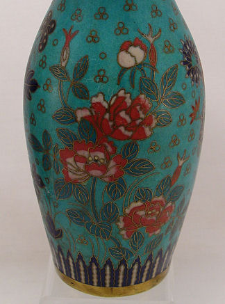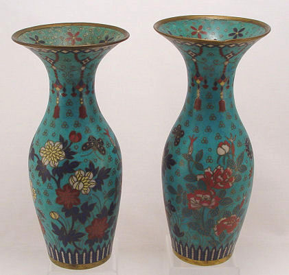 PAIR OF CLOISONNE VASES: Matched pair, flared rims, minor flaws to interior rim of one. 10 1/4'' h.