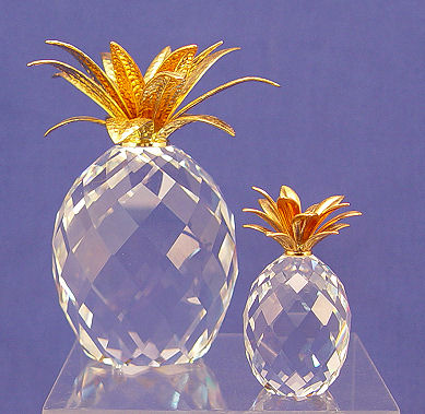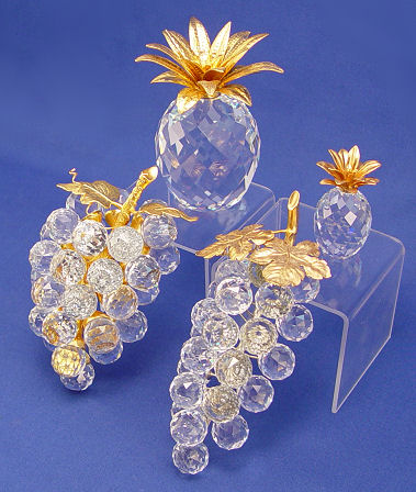 SWAROVSKI CRYSTAL ''SPARKLING FRUIT'': To include, Medium GRAPES #7550NR20029, retired, 5 3/4''; GRAPES Variation 5, #7509 150 070/ 011864, retired, 6 1/2''; Large PINEAPPLE Variation 1, #7507NR105001, gold hand hammered leaves, retired, 4''h.; Small PINEAPPLE, #7507 000 001, smooth gold leaves, retired, 2 1/4''h. Four pieces sold as a lot.