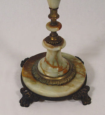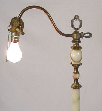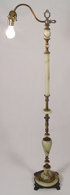 VINTAGE ONYX FLOOR LAMP: Bridge lamp with onyx on the stem, iron at the base, 55''h.
