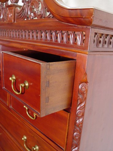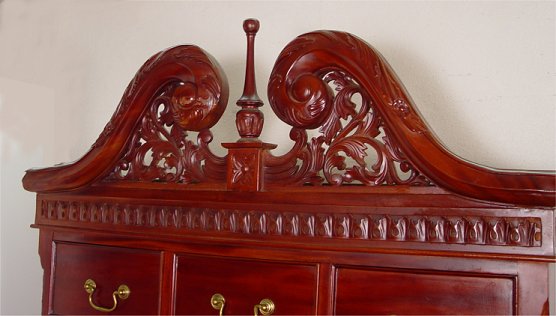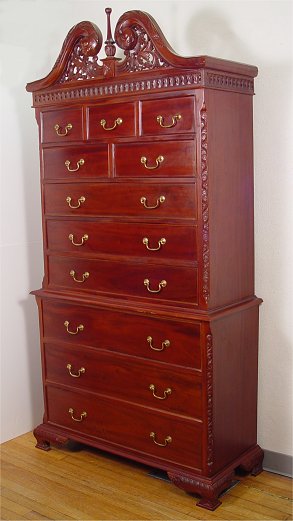 CARVED MAHOGANY CHIPPENDALE STYLE HIGHBOY: Late 20th C, 80'' h x 40 3/4'' x 16 1/2''.