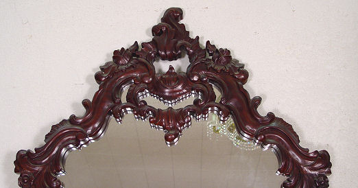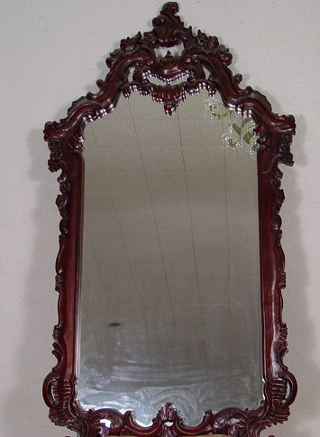 CARVED MAHOGANY CHIPPENDALE STYLE MIRROR: 55'' x 31 1/4''.