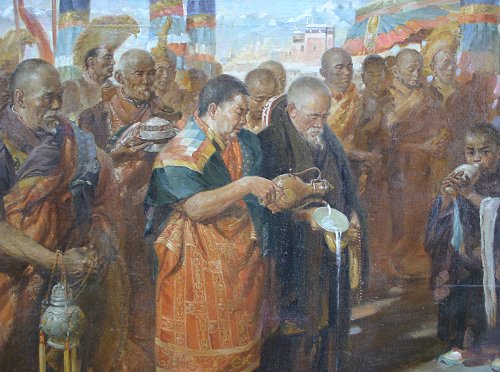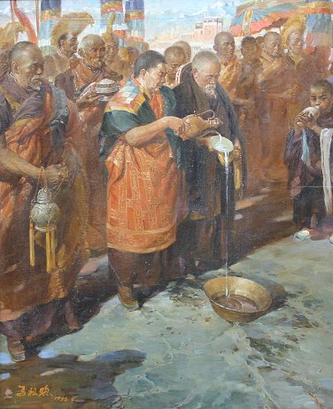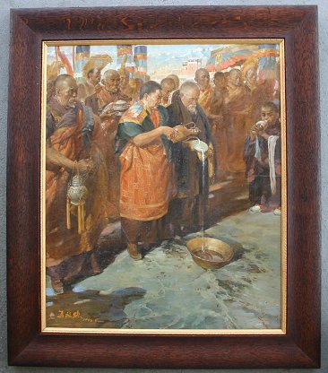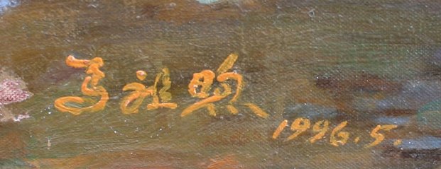 ZUXU, Ma (Chinese, 1950): Chinese Ceremonial Scene, O/C/B, 25'' x 20'', SLL, dated 1996, oak frame, 32'' x 27 1/2''.