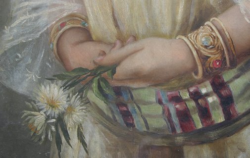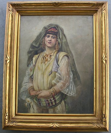 YOUNG GYPSY BRIDE O/C: Circa 1900, 28'' x 22'', period carved frame with minor wear, 36'' x 30'', SUR LUCAS and dated 18??.