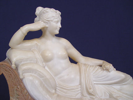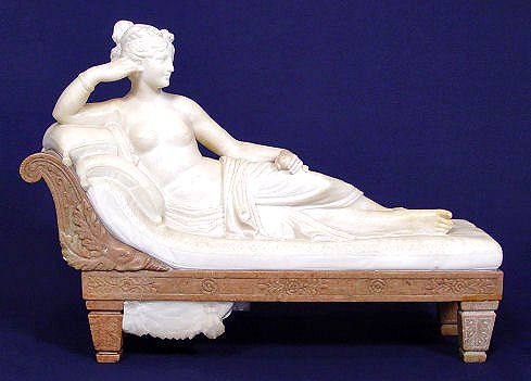 NEO-CLASSICAL CARVED MARBLE RECLINING DIANA: Ca. 1900, 16'' h., repairs to chaise, fine quality.