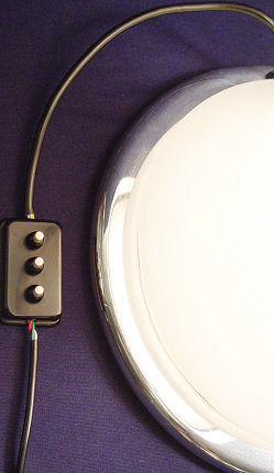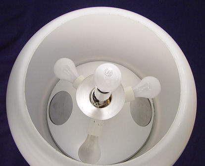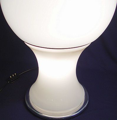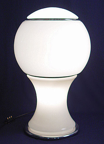 MODERNE FONTANA ARTE GLASS TABLE LAMP: All white glass globular ball form. Illuminated base and two levels at top, three separate controls on cord, approx. 32''h.. Purchased in Milano, Italy; copy of original receipt from Luigi Fontana and C., Milano.