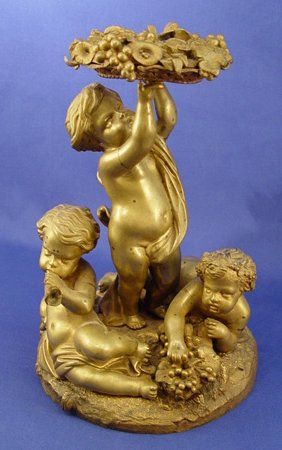 19TH CENTURY FRENCH BRONZE CHERUBIC GROUPING: 10 3/4'' tall, stamped 4077 to base, no visible signature.