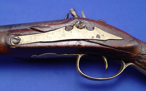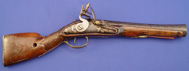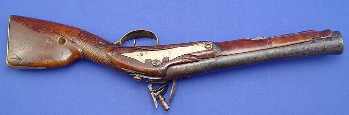 ANTIQUE BLUNDERBUSS: 20'' l., 10 1/2'' barrel, heavily worn stock with cracks and separations, hole, possible replaced later parts. Sold as is.