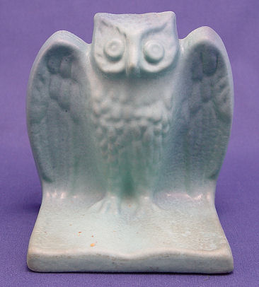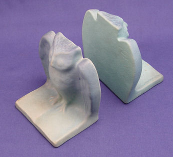 VAN BRIGGLE OWL BOOKENDS: Blue glaze, 5''h., 4 1/4''w.