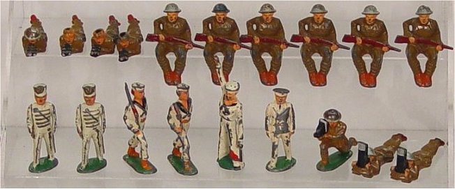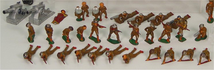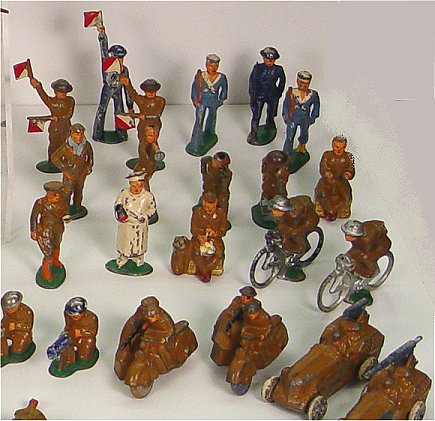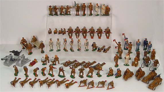 75+ BARCLAY LEAD TOY SOLDIERS & FIGURES: Huge lot from original owner, sold as a collection. To include surgeon and soldier, chef with roast, nurse, monoil anti-aircraft search lights, motorcycles with side cars, soldiers on bicycles, soldiers with flags, soldiers with pigeons, medics with stretchers and wounded soldier, machine gunners, riflemen. Please call for details and condition. Est. $900/1200**
