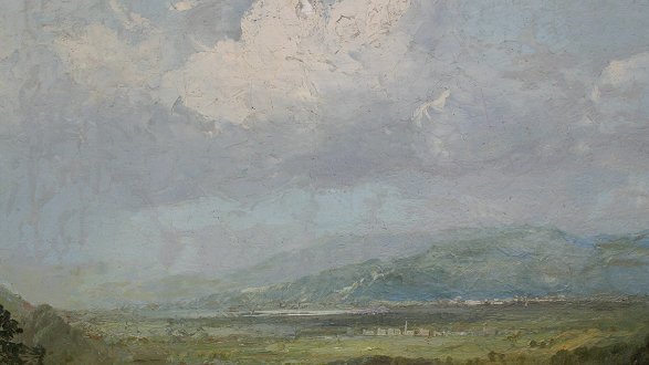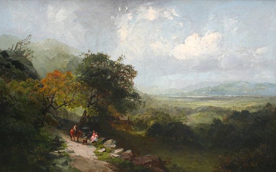 MELROSE, Andrew, (American, 1836-1901): ''Descent From The Valley, Wyoming, PA.'', O/C, 30 1/2'' x 48 1/4'', SLL, newer frame with wear, 35 1/2'' x 53''. Est. $8000/12000**