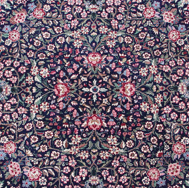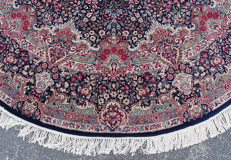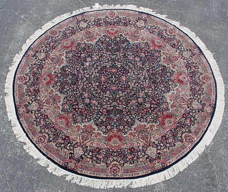 CIRCULAR ORIENTAL CARPET: Lovely dark blue ground, approx. 7'10'' plus fringe.