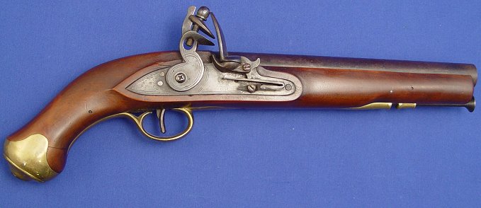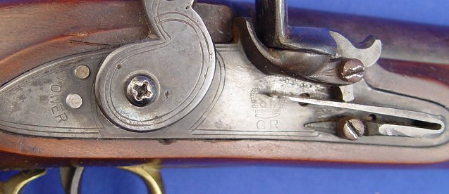 REPRODUCTION TOWER FLINTLOCK PISTOL, CROWN STAMP WITH GR: 15 1/2'' overall, 9'' barrel. Sold as is.